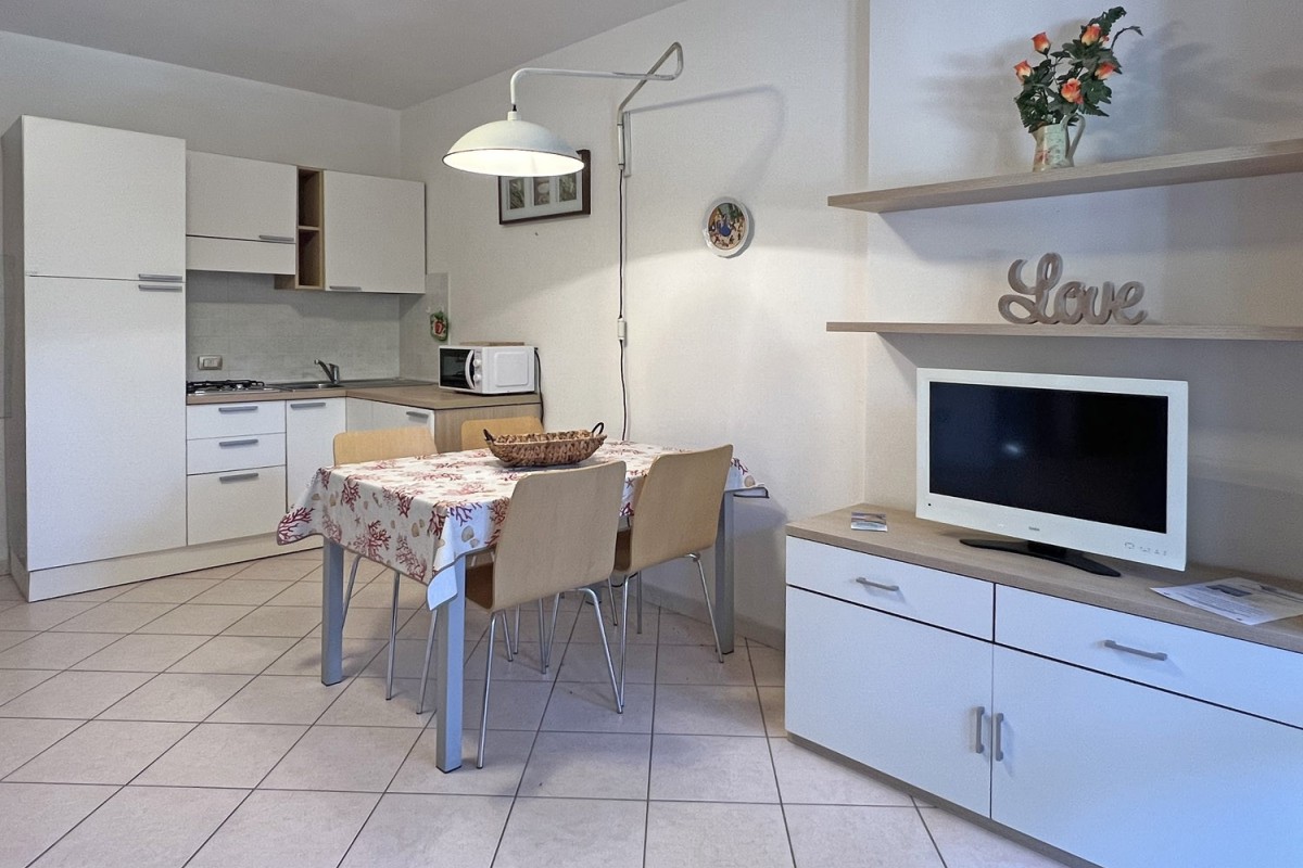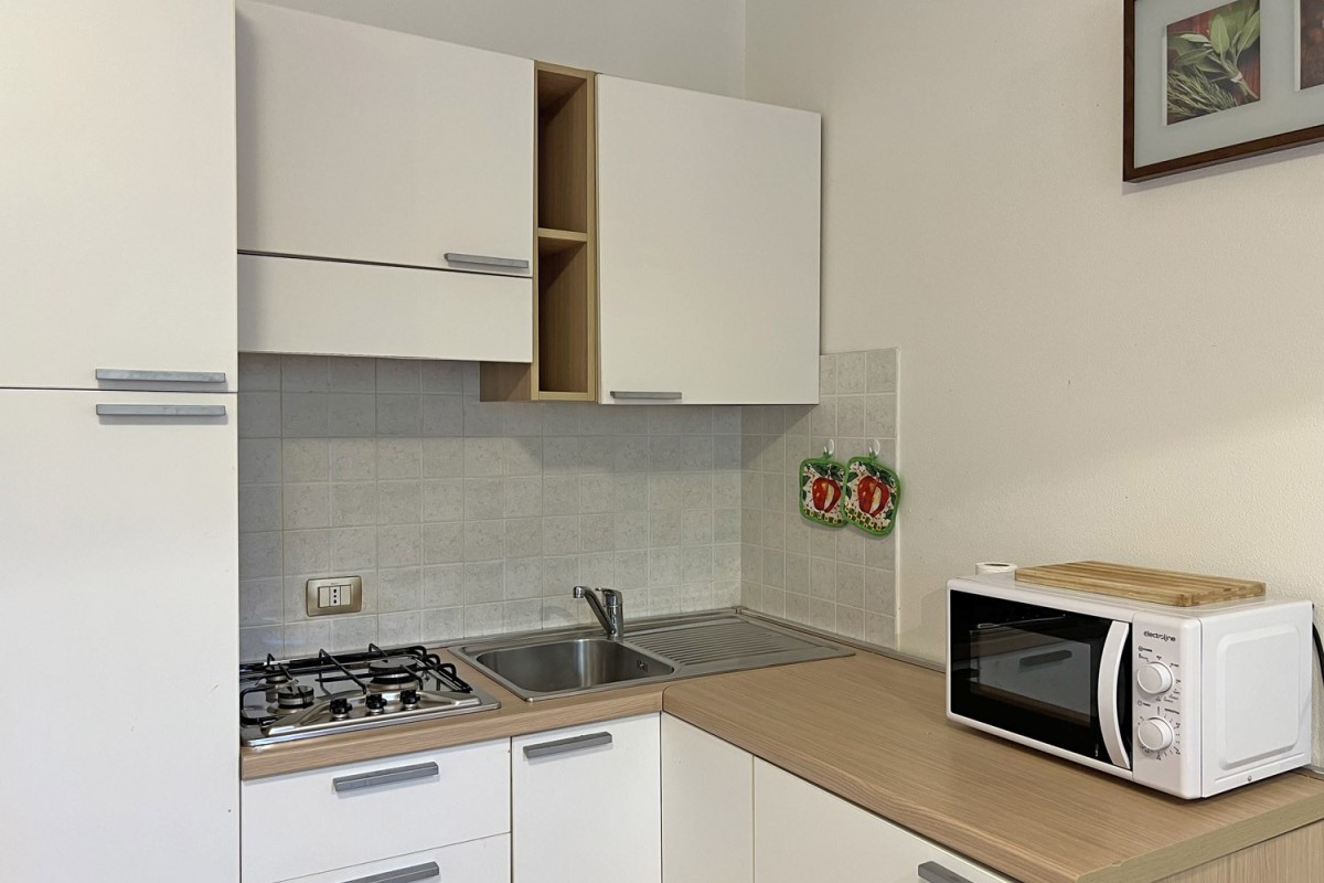 L'appartamento è composto da soggiorno con moderno angolo cottura, letto matrimoniale, cabina armadio, bagno e posto auto.