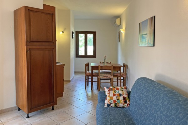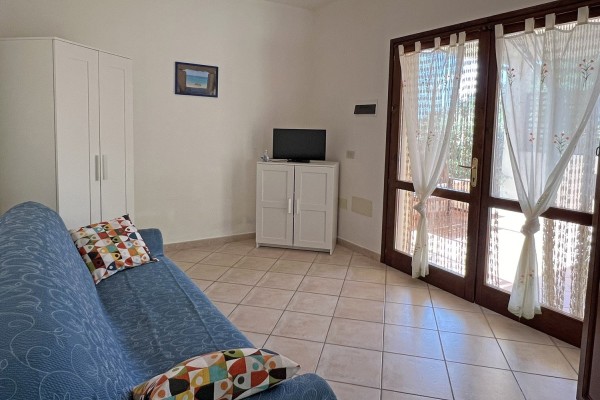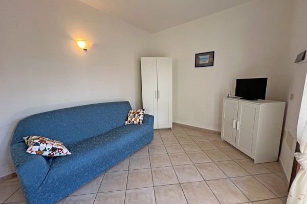 ampio soggiorno con angolo cottura e divano letto matrimoniale, camera