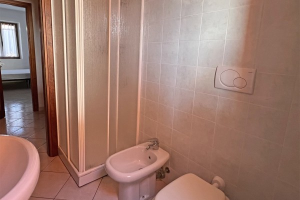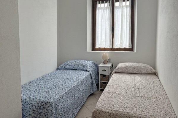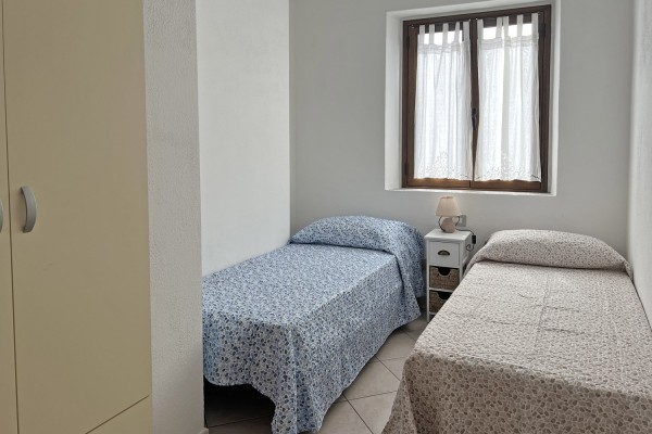 camera con due letti singoli, bagno, balcone attrezzato e posto auto di proprietà.