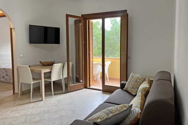 con angolo cottura e divano letto matrimoniale, camera matrimoniale con